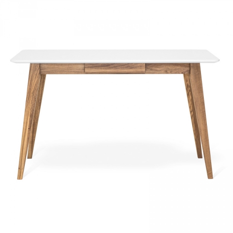 Kansi on valkoiseksi maalattua Mdf- levyä ja jalat öljyttyä tammea.
