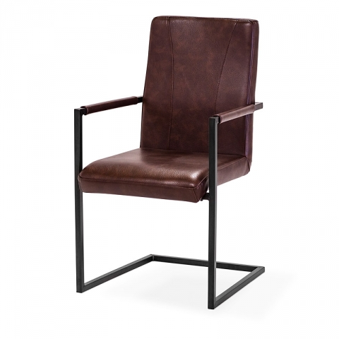 Sky-tuolin istuinosa on verhoiltu ruskealla polyuretaanipinnoitetulla kankaalla.