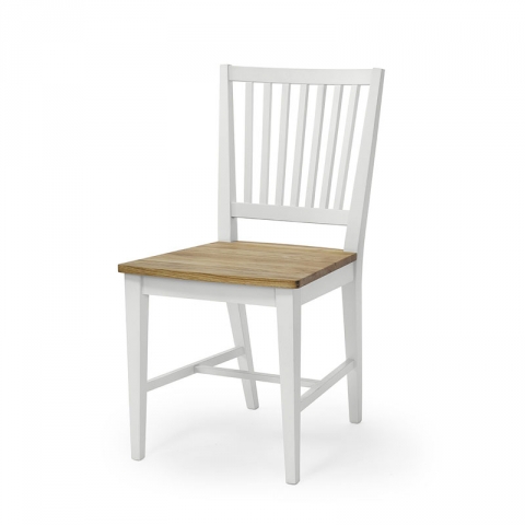 Viggsö- tuolin runko on valkoiseksi maalattua massiivikoivua.